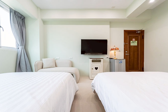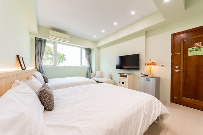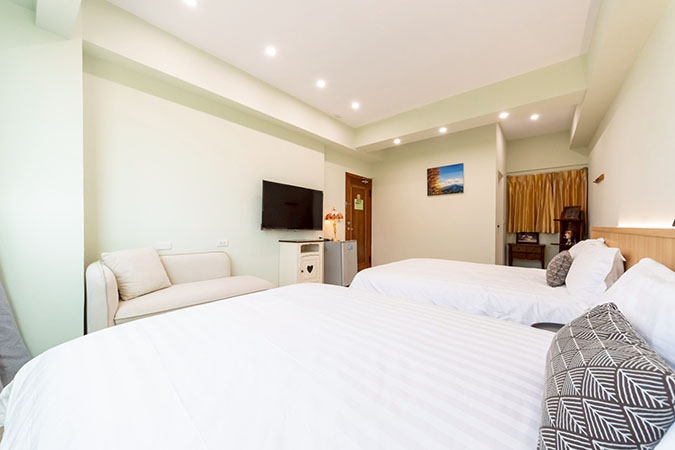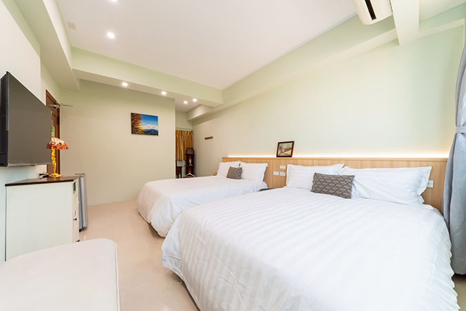 房間溫馨舒適、乾淨明亮的套房空間,客房空間寬敞,透過巧思、精心雅緻佈景,呈現溫馨別致的家居氣息,原始原木的擺飾房內有淡淡的清香,讓旅人感受像在家一般的舒適自在