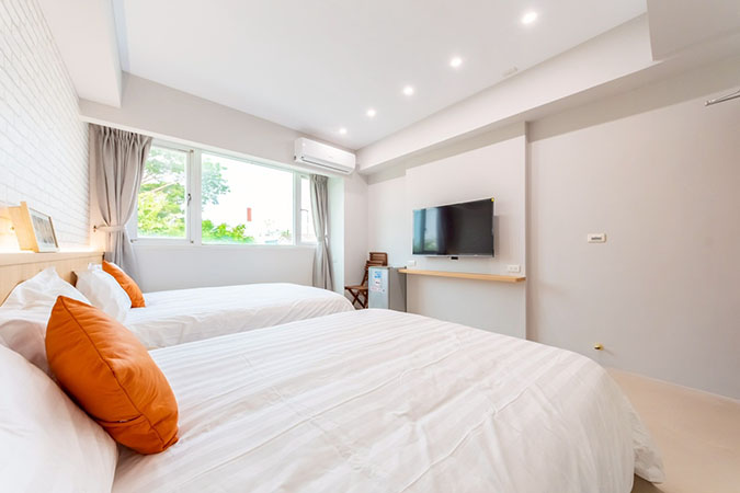 房間溫馨舒適、乾淨明亮的套房空間,透過巧思、精心雅緻佈景,呈現鄉村風格的家居氣息,讓旅人感受像在家一般的舒適自在